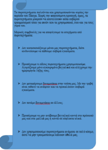 - Δεν χρησιμοποιούμε πυροτεχνήματα κοντά σε ξερά χόρτα, ώστε να μην προκαλέσουμε πυρκαγιά.